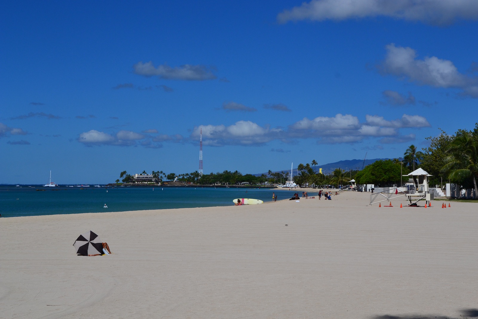 Stränder finns det gott om i Hawaii men det finns alltid något som skiljer stränderna åt, vare sig det är typ av sand, läge, vattenaktivitet etc. Ala Moana Beach (folk nämner oftast inte Park i namnet) är en väldigt praktisk strand. Jag var nyligen där med min sons skolklass och hade kul. Ala Moana Beach är praktisk för den har ganska mycket utrymme, det finns gott om gratis parkering och den ligger nära Ala Moana Shopping Center om man skulle tröttna på solen och vill shoppa eller om man blir hungrig.