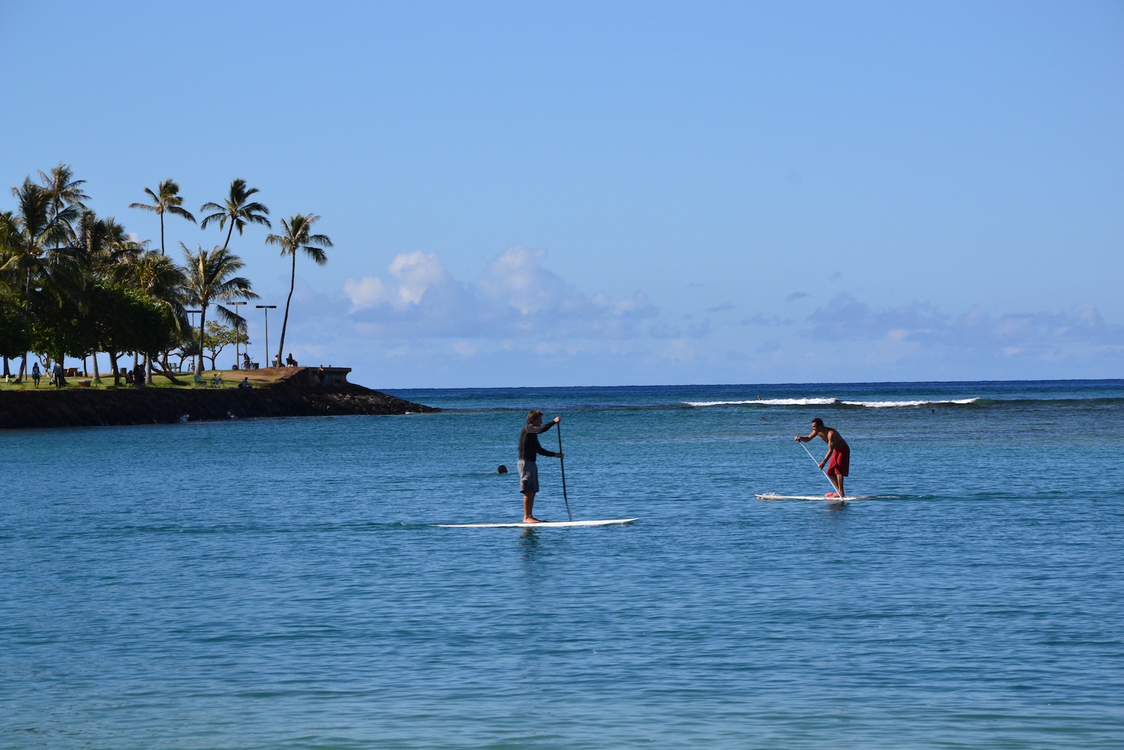 Men avstå inte att åka hit bara för det. Stranden är fin och eftersom den är skyddad av rev så är vattnet otroligt lugnt jämfört med andra stränder i Hawaii. Det är en perfekt strand att åka till om man har barn, om man vill stå-upp-paddla (stand up paddling) eller om man vill bort från det häktiska Waikiki.