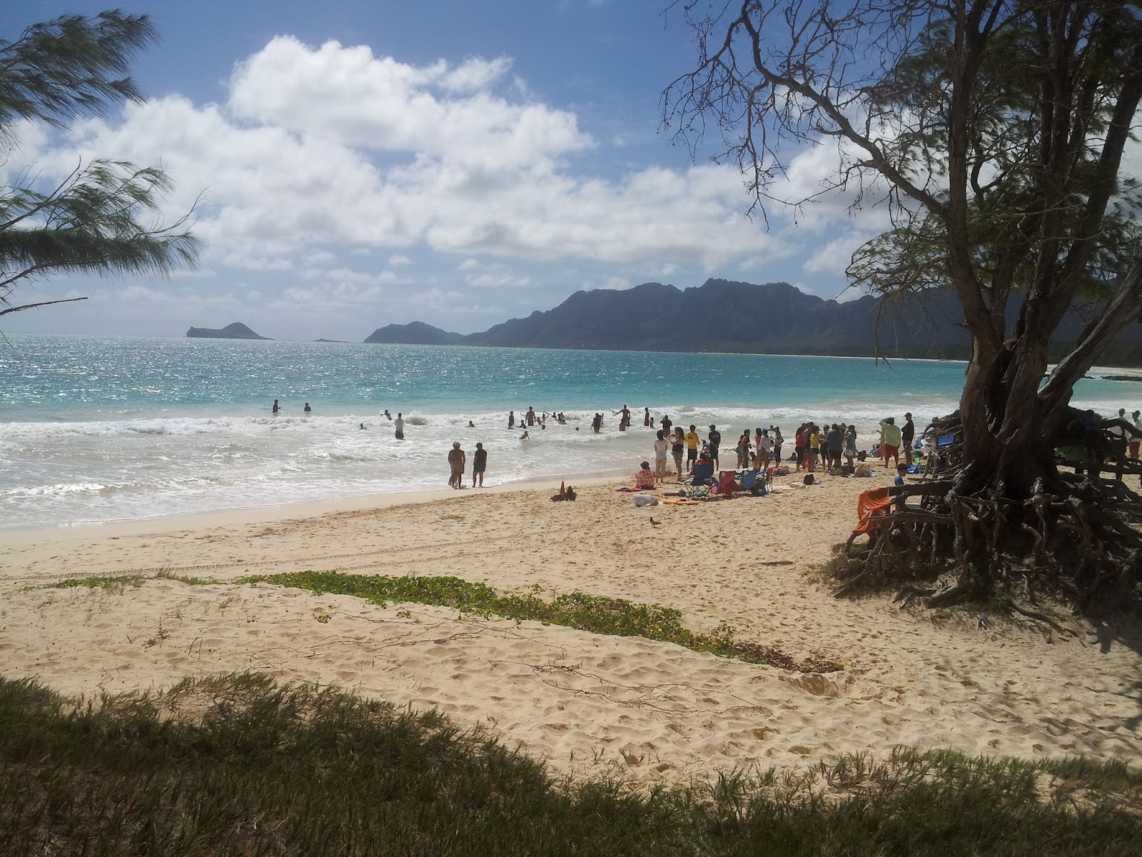 Igår hade vi picnic på Bellows Air Force Station med grabbens skolklass. Nej, det betyder inte att vi kollade på landningsfält och flygplan och sånt. Bellows är faktiskt inte längre ett flygfält utan ett stort område av stränder, camping, och motionsspår. Området på södra delen, närmast vägen, är öppet för allmänheten men åker man längre så måste man antingen vara aktiv militär eller ha tillstånd från militären. Eftersom grabbens lärare är gift med en officer i flygvapnet så fick vi tillstånd. Och det är tur det för stränderna är finare och mindre använda ju längre in på området man åker.