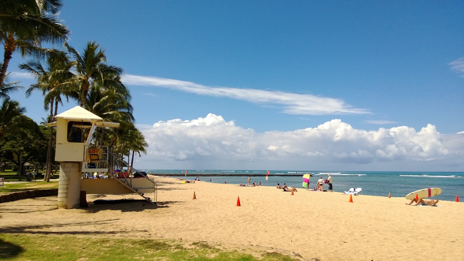 Men då och då är det kul att åka ner till Waikiki Beach och känna sig som en turist. I helgen åkte jag dit med min lilla dotter för att slappa lite och titta på turister som steker sig i solen. Oftast väljer jag stranddelen som kallas för Queens Beach, vilket är känt som bögdelen av Waikiki Beach. Men det är en fin och mindre befolkad del av Waikiki Beach, vare sig man är bög eller inte. Det är också lättare att hitta parkering där om man kör.