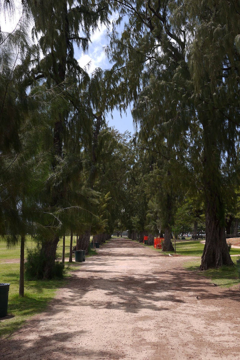 Ironwood-träden som formar allén på bilden ovan var planterade på 1800-talet av en man som jobbade åt kungen. Grusvägen gick till den gamla hästkapplöpningsbanan. Nu används allén inte till något.