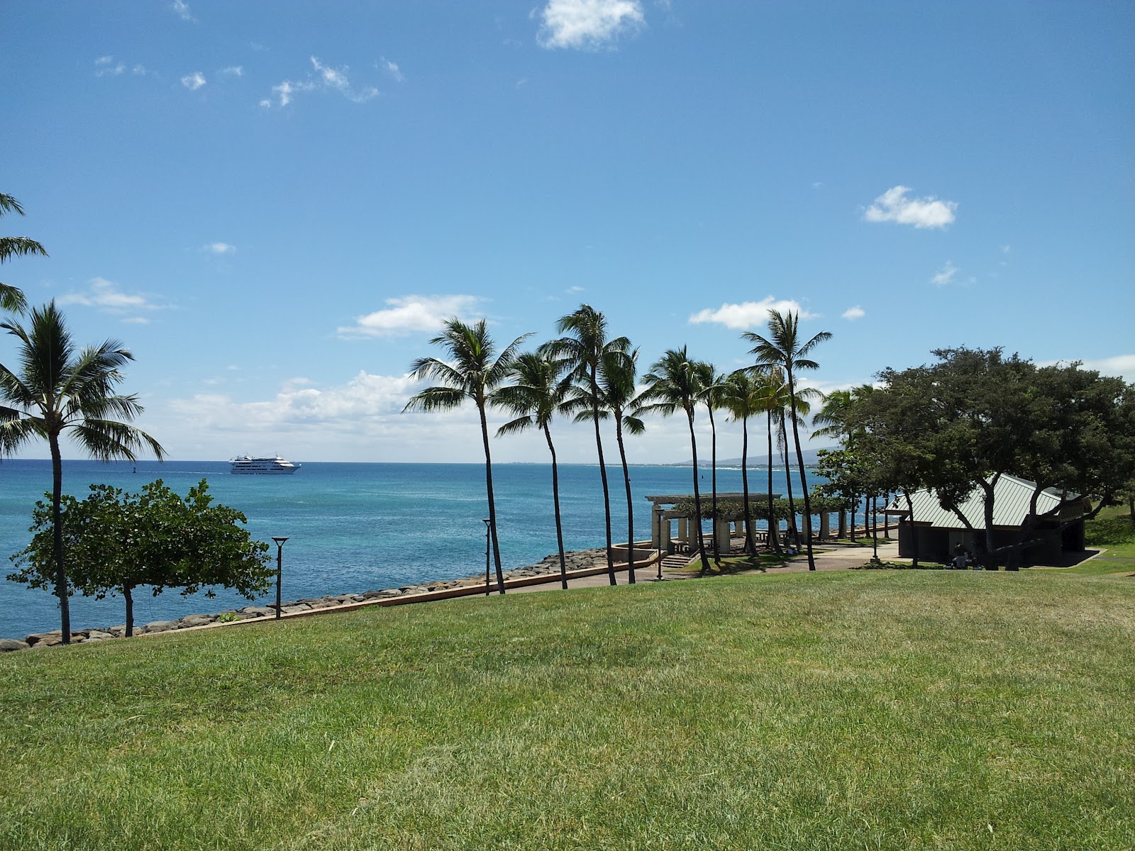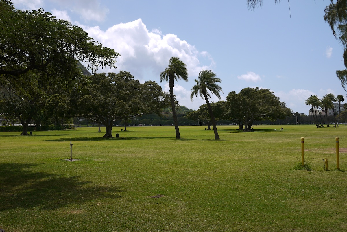 Kapiolani Park är en platt och öppen park och ett väldigt lugnt och härligt inslag i det annars hektiska Waikiki. Jag och min familj tillbringar gärna dagen i Kapiolani Park ….vi åker dit för att motionera och ha picnic.